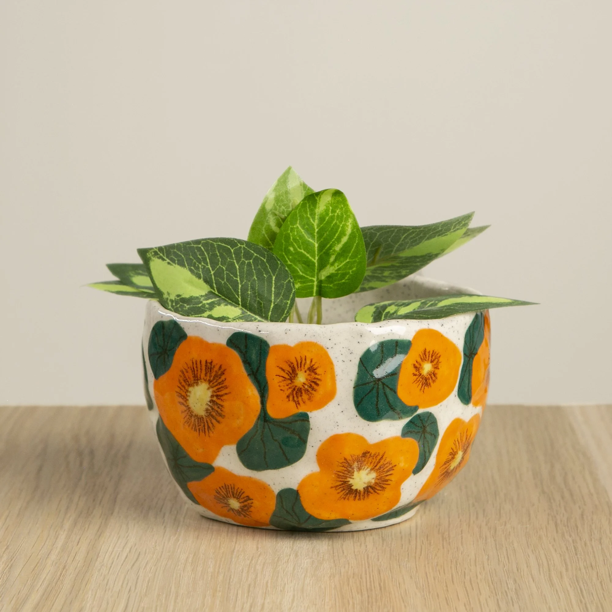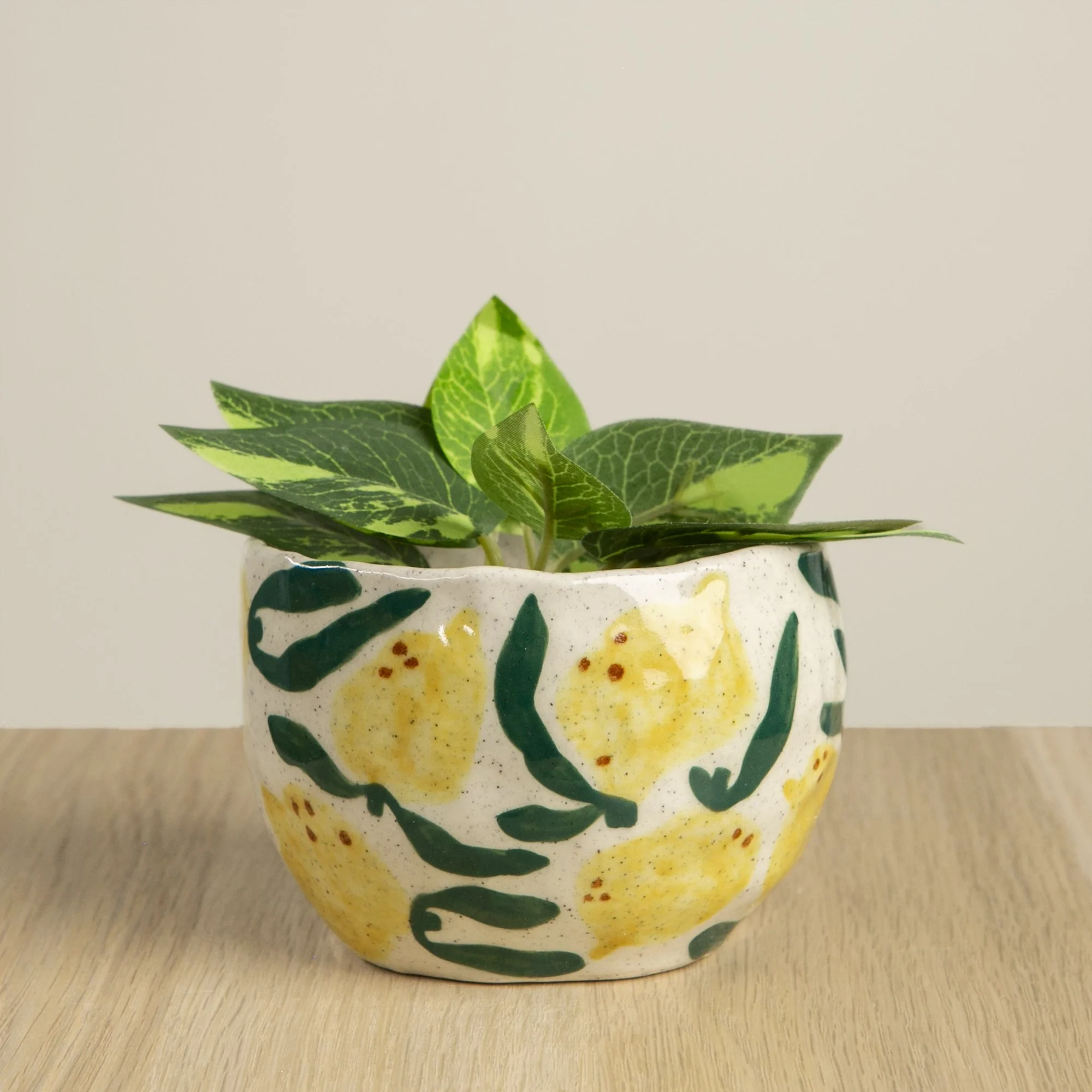 Categories: All Butter dishes Coffee cups Mugs Mini plates/Cup saucer Coasters Trinket dish Scalloped edge trinket dish Mini vases Plant pot Hanging planters Napkin rings All / Plant pot Small Ceramic Planter - Nasturtium $85.00 Sold out Small Ceramic Planter - Daffodils $85.00 Small Ceramic Planter - Lemons $85.00 Sold out